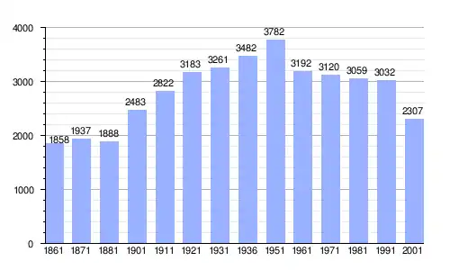Gráfica de evolución demográfica de Galatro entre 1861 y 2001 |