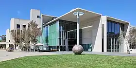 El edificio de la Galería Nacional adoptó el estilo del arquitectura brutalista a finales del siglo XX. Se caracteriza por masas angulares y superficies de concreta, y se rodeada por una serie de jardines de esculturas, donde crecen plantas y árboles nativas australianas.