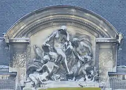 - Imagen 1: Friso de la Paleontología por André Allar, en el frontón de la entrada principal a la galería.