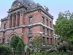 - Imagen 8: Foto exterior de la Galería de Paleontología y de Anatomía Comparada del Museo Nacional de Historia Natural de Francia, con la reconstitución de un Stegosauro (a la derecha de la imagen, un hito bien conocido por los parisinos).
