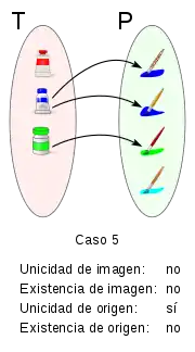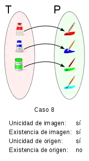 - Existencia de origen: para todo elemento del conjunto final existe algún elemento del conjunto inicial que es su origen.