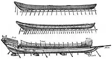- A galotxa: En una ringlera por banda (unos cuantos remeros por remo, normalmente 3 remeros: el vogavant y dos más).[24][25][26][27]