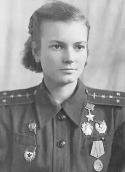 El 23 de diciembre de 1944, fue nominada para el título de Héroe de la Unión Soviética por haber completado 62 misiones, haber participado en cinco enfrentamientos aéreos y haber sido acreditada con dos derribos compartidos.[8][6]
