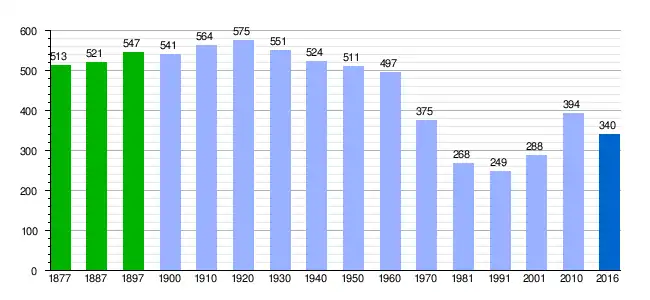 Población de derecho (1877-1897) según los censos de población del INE del siglo XIX. Población de derecho (1900-1991) o población residente (2001) según los censos de población del INE. Población según el padrón municipal de 2016 del INE. |