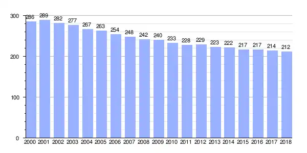 Gráfica de evolución demográfica de Gallegos[3] entre 2000 y 2018 |