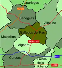 - De igual manera, desde la CL-612 tomando el desvío de Benegiles, se puede accede a Gallegos del Pan.