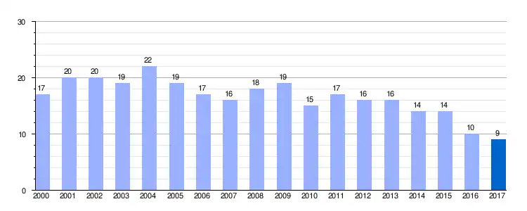 Gráfica de evolución demográfica de Gallejones entre 2000 y 2017 |