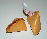 La galleta de la suerte o de la fortuna es una especie de galleta de paredes delgadas y crujiente que ha sido horneada, en su interior lleva una pequeña tira de papel con palabras de sabiduría o profecías. Según una creencia popular para poder adquirir la fortuna de las galletas se debe ingerir la misma completamente incluido el lienzo en el que se encuentra la fortuna. Algunas también de forma jocosa revelan futuros resultados de lotería o diferentes bromas relacionadas con el futuro. Estas galletas no se inventaron en China, como se cree a menudo a nivel popular, sino que sólo recientemente fueron introducidas en ese país, en principio para complacer los caprichos y gustos de los turistas en las grandes ciudades, como Hong Kong y Pekín.