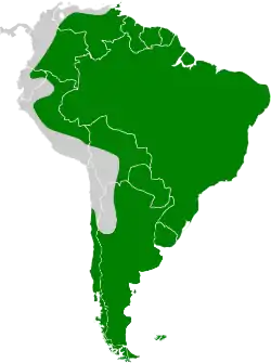 Esta pequeña limícola se reproduce en la mayor parte de Sudamérica lejos de la costa del Océano Pacífico y este de Brasil, y también en las Islas Malvinas, Trinidad y posiblemente Tobago. La denominada raza de tierras bajas G. p. paraguaiae es residente, pero la población del sur G. p. magellanicae migra hacia el norte en invierno, abandonando Tierra del Fuego, y la andina, G. p. andina, se desplaza hacia terrenos más bajos. Vive entre los 300 y 1.300 m de altitud.[5] Habitat pastizales inundables o cerca de cuerpos de agua.