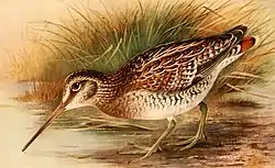 ![]() Gallinago solitaria, ilustración de Henrik Grönvold en The Game-Birds of India, Burma and Ceylon. | ||