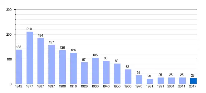 Gráfica de evolución demográfica de Gallinero de Cameros entre 1842 y 2017 |