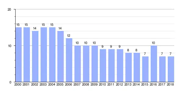 Gráfica de evolución demográfica de Galo entre 2000 y 2018 |