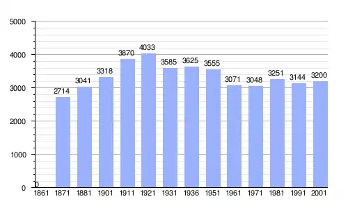 Gráfica de evolución demográfica de Gambellara entre 1861 y 2001 |