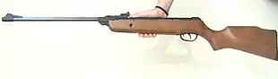 Durante la década de 1970, en el Reino Unido, "El Gamo" comercializó dos rifles de aire comprimido, el Marksman, un rifle de calibre .22 convencional con mira telescópica ajustada, y el repetidor Paratrooper, un .177 con mango de pistola y culata que incorporaba un cargador tubular en la parte superior del cañón, con un mecanismo ascendente/descendente para colocar la munición.