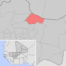 Se encuentra ubicada en el centro-este del país, cerca de la frontera con Burkina Faso y con la región de Tombuctú.