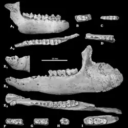 ![]() Mandíbulas y dientes de G. minor (A-D) y G. robustus (E-I). | ||