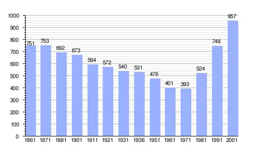 Gráfica de evolución demográfica de Garlenda entre 1861 y 2001 |