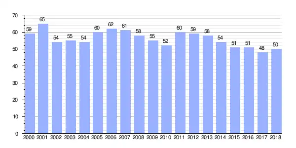 Gráfica de evolución demográfica de Gas entre 2000 y 2018 |