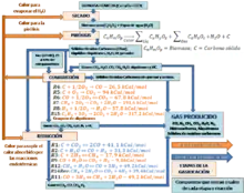 Reacciones que se llevan a cabo en el proceso de gasificación