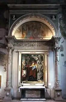 A Cairano, también, se le atribuye el Altar de San Girolamo en la iglesia de San Francisco . Uno de los temas críticos de la escultura renacentista en Brescia es la falta de fuentes históricas sobre su origen. [29] Ciertamente, el altar fue tallado después de 1506, [note 10] dada su alta calidad y originalidad artística, de hecho el más alto nivel de arte en el período bresciano, [30] y evoca varias características del trabajo anterior de Cairano en la Logia y el frente. -patio de la iglesia de San Pietro en Oliveto. [29]