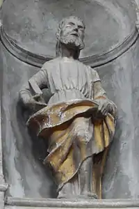 La colocación de los Ángeles y los Apóstoles, así como la afinidad entre ellos, sugieren que tanto Tamagnino como Cairano obtuvieron tempranamente la propiedad de las obras internas de Santa Maria dei Miracoli, [6] aunque al final recayó en Cairano. [5] Técnicamente, sin embargo, los Ángeles de Tamagnino son muy superiores a los Apóstoles . [6] Además de los Ángeles, Tamagnino también entregó cuatro bustos para la pechina de la primera cúpula de la iglesia, titulada Dottori della Chiesa, [note 24] y dos redondeles más pequeños para el friso de la nave. Pero por estas construcciones, tres de las cuales eran monumentales, y los Ángeles, el escultor recibió una compensación menor que Cairano por sus Apóstoles . [103] [note 25]