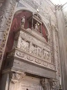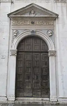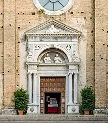 La construcción de la entrada al Duomo de Salò está profusamente documentada entre 1506 y 1509. El diseño fue de Cairano, [31] [32] muy probablemente en colaboración con Antonio Mangiacavalli . [33] La mano de Cairano es evidente en las figuras del Padre, San Pedro y San Juan Bautista, dejando a la Virgen a su colaborador, mientras que el Ángel de la Anunciación y dos bustos en las enjutas parecen obra conjunta. . Las partes arquitectónicas fueron realizadas por diferentes canteros según consta en los documentos relativos a los talleres, incluido el hijo de Mangiacavalli. [34] El portal se colocó en agosto de 1508, y los adornos y otros trabajos terminaron a principios de 1509. [31]