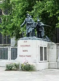 - Châlons-en-Champagne, la escultura se titula La Dernière Relève (el último relevo).[3] Se trata de una pieza escultórica de bronce representa una demi-escouade con un Lieutenant frente a la artillería de las trincheras.[4]