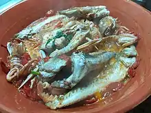- Scapece alla vastese: Pescado típico de la costa de Chieti, para su preparación se utilizan trozos de mielga o raya, enharinados, fritos en aceite de oliva y marinados en vinagre aromatizado con azafrán Navelli, del que se extrae en el típico color amarillo intenso [3].