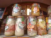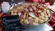 Ingredientes | carne de cerdo (tocino, charcutería), lácteos (queso Munster), foie gras, pescados (carpa, arenque, lucioperca, matelote), miel, caracoles, col, espárragos, cerveza, vino (uvas blancas: Riesling, Sylvaner, Gewürztraminer; uva tinta: Pinot Noir)[1] | |