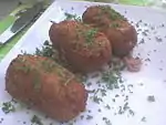 - Garnaalkroketten (neerlandés) o croquettes aux crevettes (francés): croquetas de quisquillas, a menudo servido con perejil frito en aceite.
