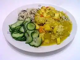 - Boller i karry, albóndigas en curry con manzana, cebolla y apio servido con arroz.