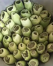 - Pacaya, flores de palma empanado en harina de maíz, frito y servido con salsa de tomate.