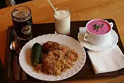 - Esta obra contiene una traducción parcial derivada de «Lithuanian cuisine» de Wikipedia en inglés, publicada por sus editores bajo la Licencia de documentación libre de GNU y la Licencia Creative Commons Atribución-CompartirIgual 3.0 Unported.