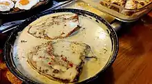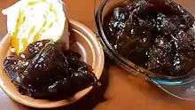- Kivevé: es uno de los platos de comida semidulce de la gastronomía paraguaya. Se trata de una crema pastosa y consistente que tiene como base a un tipo de zapallo o calabaza tradicional llamado andaí. Para el kiveve tradicional se utilizan agua, leche, azúcar, harina de maíz y queso.[44] En la creencia popular esta receta está indicada a mujeres que están amamantando ya que la calabaza ayuda a producir más leche materna. Una variante de este es el Kivevé Negro, el cual lleva torta negra de miel negra mojada en cocido quemado, y espolvoreado con ka'i ladrillo triturado. Las técnicas de preparación tienen un componente de sabiduría regional, como el kaguyjy, que le dio su nombre en guaraní a la mazamorra, pero que originalmente describía un modo de tratar a algunos ingredientes. La técnica del que se habla consiste en reposar el maíz para el desprendimiento de su cáscara, el cual se hace preferentemente del marlo del maíz y ramas de naranja, que se queman; queda la ceniza que después se mezcla con agua y se pone en paño para estrujarlo. El líquido obtenido de ahí se utiliza para la preparación de la mazamorra, el dulce de mamón, etc. Este procedimiento es poco común en otros lugares y en México se la conoce como nixtamalización, pero se hace con cal en lugar de ceniza.