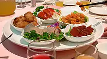 Muchos de los platos de la cocina taiwanesa (salvo los postres) suelen considerarse aperitivos, teniendo un estatus parecido al dim sum cantonés o las tapas españolsa. Estos platos suelen salarse poco, acompañando la parte principal de carne o pescado con mucha verdura.