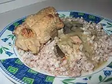 • Kasha hrechana zi shkvárkamy: Alforfón con cortezas de cerdo y cebolla.