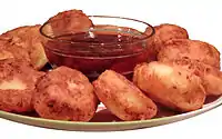 • Varényky (también llamado pyrohy en algunas regiones de Ucrania Occidental): Masa hervida hecho con rellenos tales como patatas machacadas y cebolla fritas, carne picada cocida y cebollas fritas, hígado y cebollas fritas, col frita con cebollas fritas, quark, cerezas, y fresas.[5][6] Servido con crema ácida y mantequilla o azúcar cuándo es rellenado con frutas.