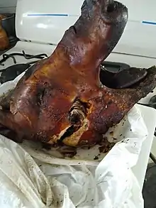 • Puerco asado o a la puya (En Santiago de los Caballeros se le conoce así): Es un cerdo horneado al aire libre con leña , sazonado con pimienta, sal, caldo de pollo (Sopita), ajo, orégano. Se come en todo el año especialmente en Navidad. También se puede cocinar en el horno de cualquier casa o directamente en el carbón.