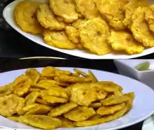 • Fritos o tostones  : Rodajas de plátano frito. Se utiliza como acompañante de todo.