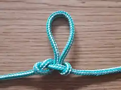 Nota: Este nudo queda en línea con la cuerda sobre la que trabaja. El tensado y la colocación de este nudo es de una dificultad superior a la de otros nudos de función similar.