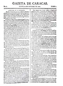 La Gazeta de Caracas se considera el primer periódico de Venezuela, que vio luz por primera vez en el año de 24 de octubre de 1808 y fue contrarrestado por el periódico Correo del Orinoco.[1][2]