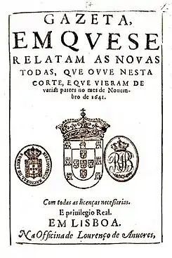 Durante el siglo XVII ya habían existido publicaciones periódicas con el título de "Gazeta", siendo el ejemplo más importante el de las "Gazetas" publicadas entre 1641 y 1647, con privilegio atribuido a Manuel de Galhegos. Son conocidas como las "Gazetas de la Restauración", habiendo funcionado como un arma de propaganda durante las guerras con Castilla tras la aclamación de D. João IV.[2]
