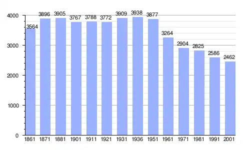 Gráfica de evolución demográfica de Gazzuolo entre 1861 y 2001 |