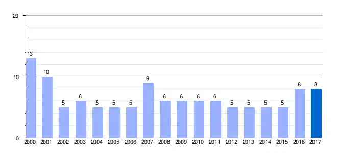 Gráfica de evolución demográfica de Gejo de Diego Gómez[3] entre 2000 y 2017 |