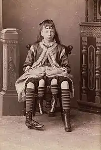 Myrtle Corbin (1868-1928) se exhibía desde los trece años como La chica con cuatro piernas de Texas. Era un dípigo completo, nació con un parásito colgando de su abdomen, consistente en un pequeño cuerpo perfectamente desarrollado de cintura para abajo, incluso sus genitales y aparato reproductor. Se casó a los 19 años y tuvo cinco hijos, según su promotor, tres nacieron de su cuerpo y dos del parásito. Este hecho puede parecer increíble, pero en un número del British Medical Journal de 1889 se describe el caso de una joven de 20 años que portaba un parásito similar. Cuando su médico le informó que estaba embarazada, le replicó que se equivocaba, pues su marido generalmente solo mantenía relaciones íntimas con el parásito. Este no estaba tan desarrollado como el de Myrtle para acoger el feto y tuvo que abortar.[3]