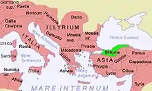 En torno al 202 a. C. el rey Filipo V de Macedonia conquistó la ciudad de Kios como parte de la guerra contra Pérgamo por la expansión en el Egeo, masacrando a gran parte de sus habitantes y deportando y esclavizando al resto, y se la entregó posteriormente al rey Prusias I de Bitinia (aliado de Filipo contra Pérgamo), que la reconstruyó y repobló. La destrucción de Kios motivó la petición de ayuda de las polis griegas a Roma, que declaró la guerra a Filipo (segunda guerra macedónica) y lo derrotó en la batalla de Cinoscéfalos.