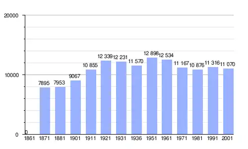 Gráfica de evolución demográfica de Gemona del Friuli entre 1861 y 2001 |