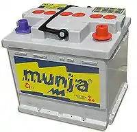 - Batería es un conjunto de varios elementos o celdas voltaicos, agrupados horizontalmente y conectados en serie para obtener una corriente de mayor voltaje, como la batería de automóvil. A veces se usa este término como sinónimo de pila o de generador eléctrico.