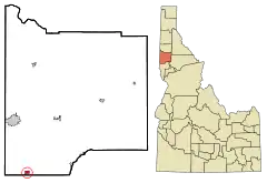 ![]() A la izquierda, ubicación en el condado de Latah, en Idaho. A la derecha, ubicación del condado de Latah en el estado de Idaho ![]() Ubicación de Idaho en EE. UU. | ||