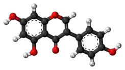 La genisteína es un fitoestrógeno que pertenece a la categoría de las isoflavonas. La genisteína fue aislada por primera vez en 1899 a partir de Genista tinctoria ; por lo tanto, el nombre químico deriva del nombre genérico. El compuesto núcleo se estableció en 1926, cuando se encontró que era idéntica a prunetol. Fue sintetizado químicamente en 1928[2]